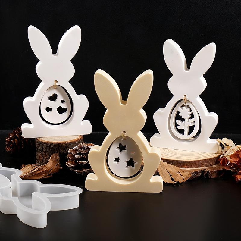 Easter Bunny Hanging Ring Mold Rabbit Easter Egg Mushroom Tag Plaster Hanging Ornament Easter Decor Silicone Mold
