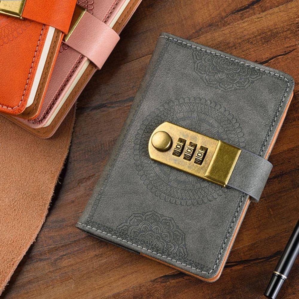Line A7 Notebook with Lock PU Cover 200 Pages PU Notebook with Lock Student Diary Horizontal Line Office Notebook