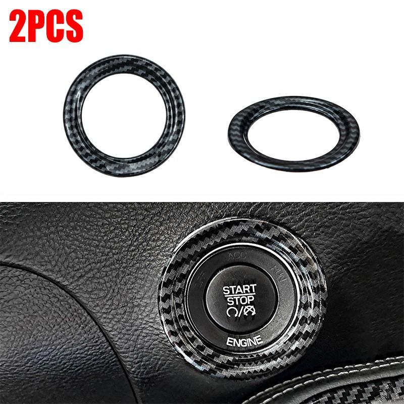 Carbon Fiber Engine Start Push Button Ring Trim Set For Dodge Challenger 15-2020