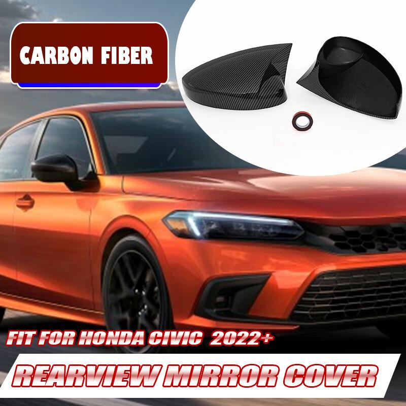 For Honda 11th Civic 2022-23 Carbon Fiber Horn Style Side Mirror Cover Caps Trim