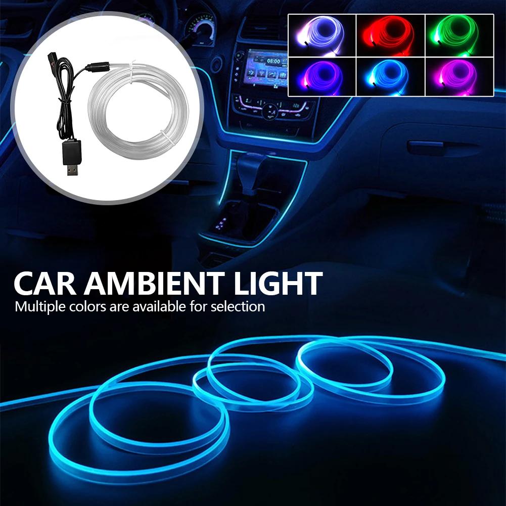 RGB LED Fiber Optic Car Ambient Light Strip Multi-color Dashboard Decoration Interior Mood Light 1/2/3/4/5 Meter Custom Length
