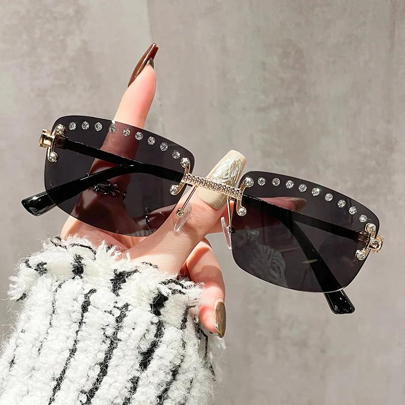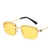 Vintage Rimless Square Diamond Sunglasses Women For Men Sun Glasses Punk Pink Shades Luxury Brand Designer Hip Hop Eyewear UV400