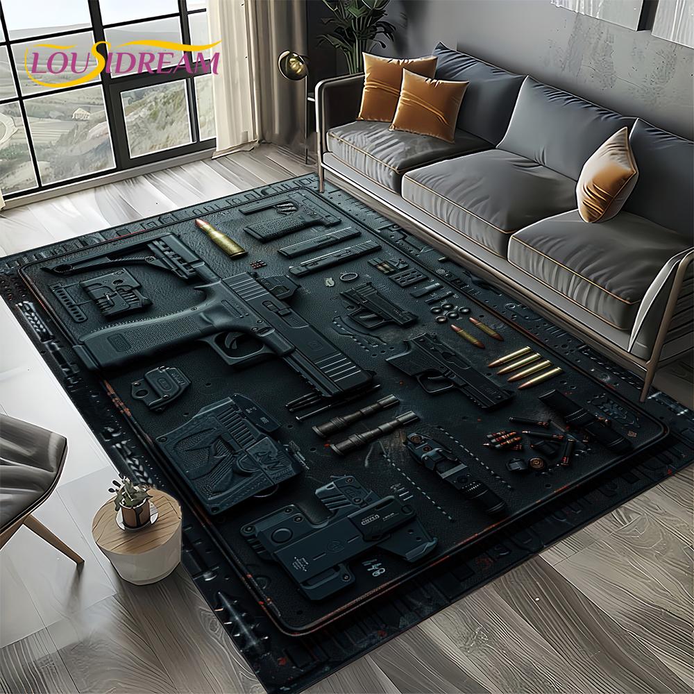 2025 New Retro Guns Pistol Ammunition Bullet Cartridge AK M4 Rug Carpet for Living Room Bedroom Decor,Non-slip for Sofa Doormat