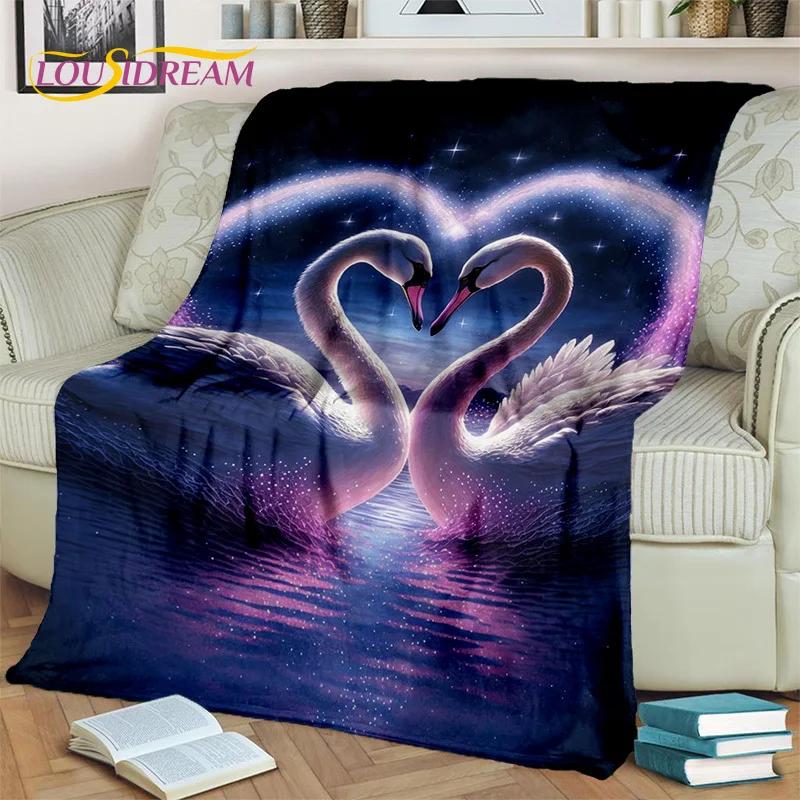 3D Dream Love Swan Cartoon Cygnus Girl Gift Blanket,Soft Throw Blanket for Home Bedroom Bed Sofa Picnic Travel Cover Blanket Kid