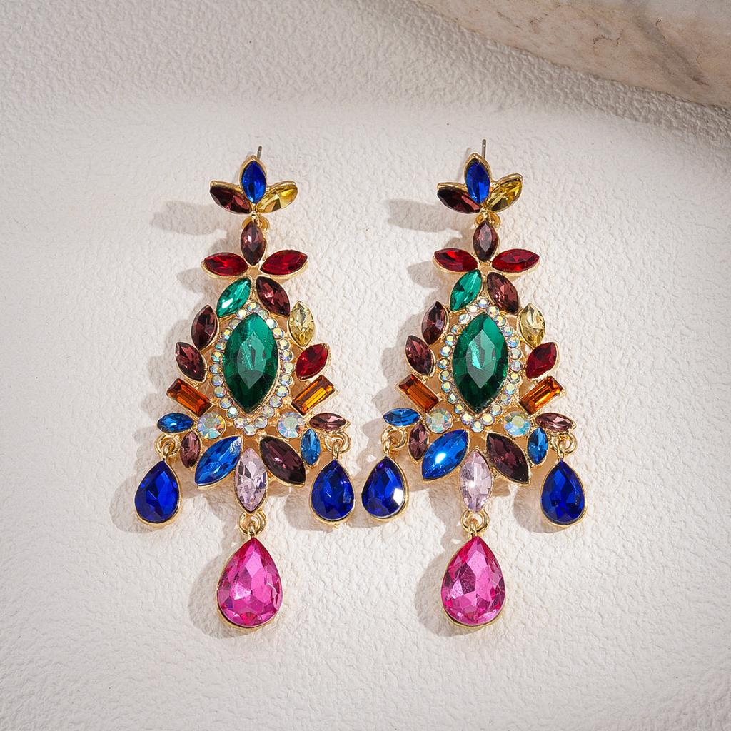 Court Style Diamond-set Flower Water Drop Silver Needle Earrings Fashionable and Exquisite Earrings