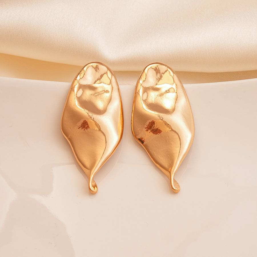 Heavy Industry Glossy Irregular Folded Leaves Silver Needle Earrings Personality Temperament Earrings