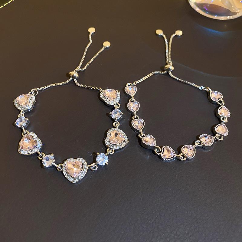 Sweet Light Luxury Zircon Diamond Love Pull-out Bracelet Commuter High-end Geometric Jewelry