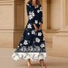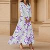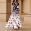 Women's Casual 3/4 Sleeve V-Neck Floral Print Maxi A-Line Beach Dress
