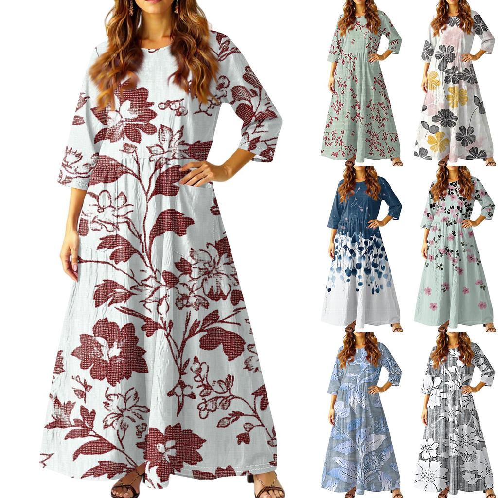 Women's Casual Fashion Floral Print Three-quarter Sleeve Long Dress With Pockets Women's Summer Casual Floral Print Short Sleeve O Neck High Waist A Line Tiered Flowy Boho Maxi Dress We can guarantee that the overall displayed in the photography is accurate, however there may be differences in how the appears during wear. This depends other physical variables, e.g. personal body size, body shape, limb proportion, height, etc. Description: MATERIAL: Our short-sleeve summer dresses feature a skin-friendly, soft, and elastic fabric that is breathable, does not shrink, and offers exceptional comfort, providing you with a delightful wearing experience. MATCHING: Pair with and a denim jacket for a relaxed day, or to a and heels for work. Add jewelry and heels for nights out, or sandals and a crossbody bag for weekends. OCCASION: This dress is versatile for various occasions like everyday wear, casual outings, work, evening events, weekend gatherings, beach trips, vacations, and travel adventures. Gender:Women Material:Polyester Dress Length:Knee-Length Decoration:None Silhouette:A-Line What you get:1 X Dress Note: Due to possible physical differences between different monitors, the product photography is illustrative and may not precisely reflect the actual color of the item received