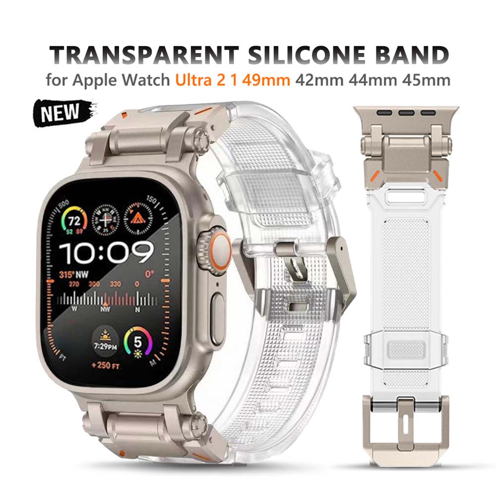 Silicone Transparent Strap For Apple Watch Ultra 2 49mm Series 9 8 7 45mm Soft Rubber Band For iWatch 6 5 4 Se 42mm 44mm Correa