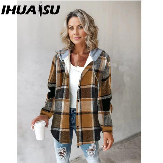 IHUASU Women's Vintage Casual Autumn Winter Long Sleeve Jackets & Coats