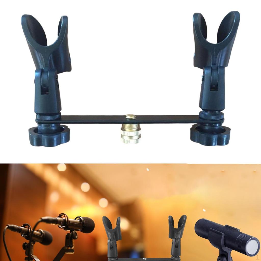Microphones Clips 180° Adjustable Black Universal 1 To 2 Mic Mount Compact Non Slip Attachment