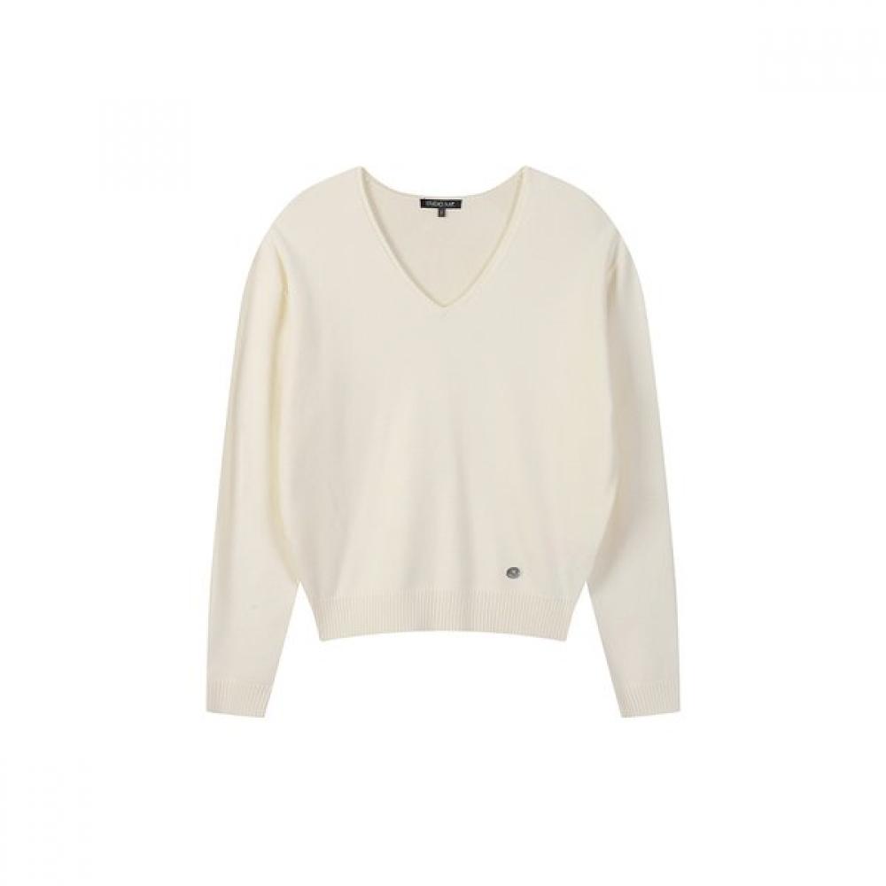 The Basic V-Neck Knit AS1KH163 features a simple V-neck design, making it an essential knit for daily wear. With a soft feel and classic silhouette, it can be matched with various pants or skirts, and its thin thickness is suitable for layered wear.
