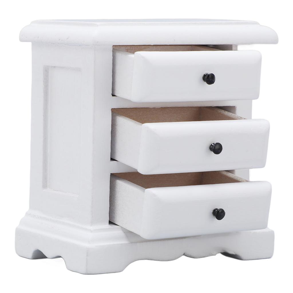 1:12 Scale Night Stand Birch Wood 3 Drawers Ature Bedside Table for Home Decor