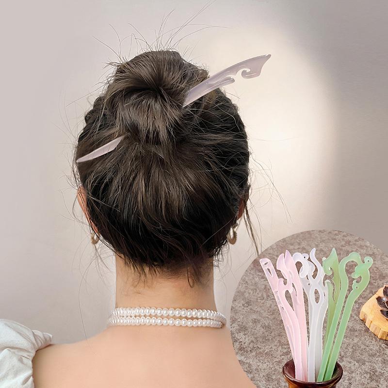 Imitation Jade Ancient Wind Hairpin Daily Hair Coiffure Hanfu Bamboo Xiangyun Cheongsam Hair Pulling Pill Head Multicolor Hairpin