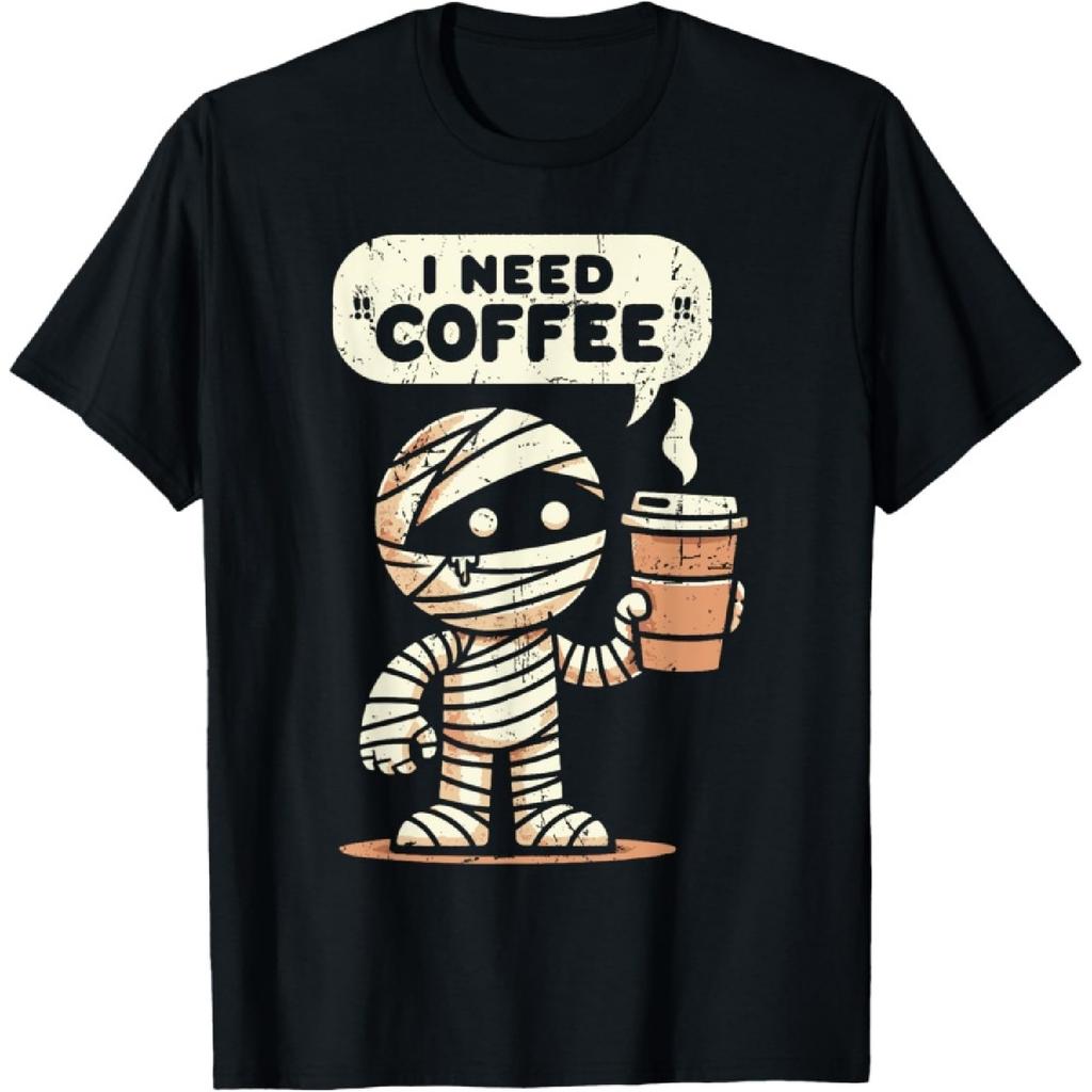 Mummy Halloween I Need Coffee Funny Sarcastic Caffeine Funny T-Shirt