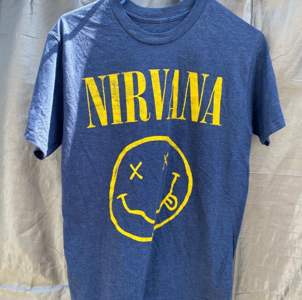Nirvana Smiley Face Blue T-Shirt-SZ S Unisex T-Shirt