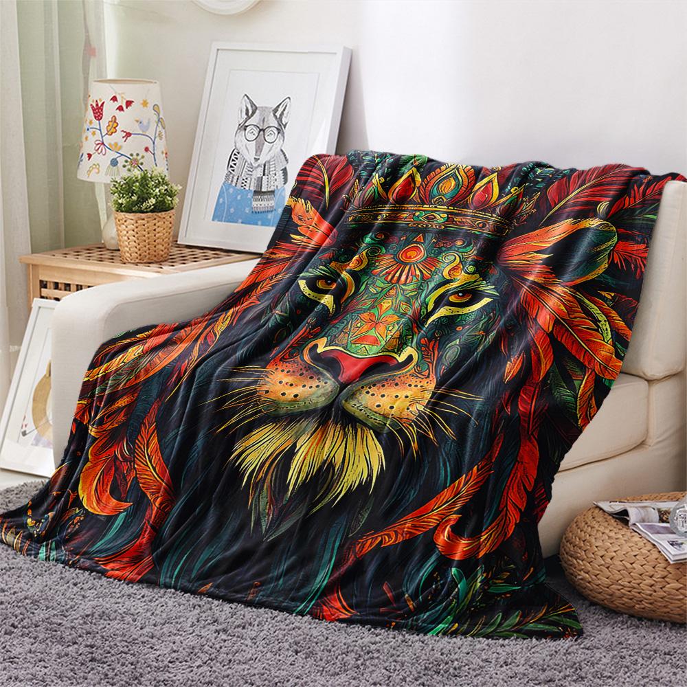 Lion Print Flannel Blanket, High Quality Comfortable for All Seasons, Home Decor, Warmth and Comfort, Perfect for Christmas Gifts