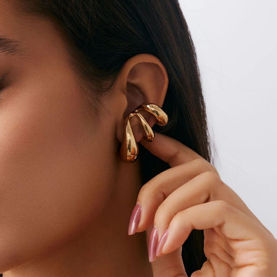 Salircon 1Pc Vintage Metal Three Layer Stud Earrings Women Punk Hip Hop Minimalist Ear Clip Daily Wear Jewelry Accessories Gifts