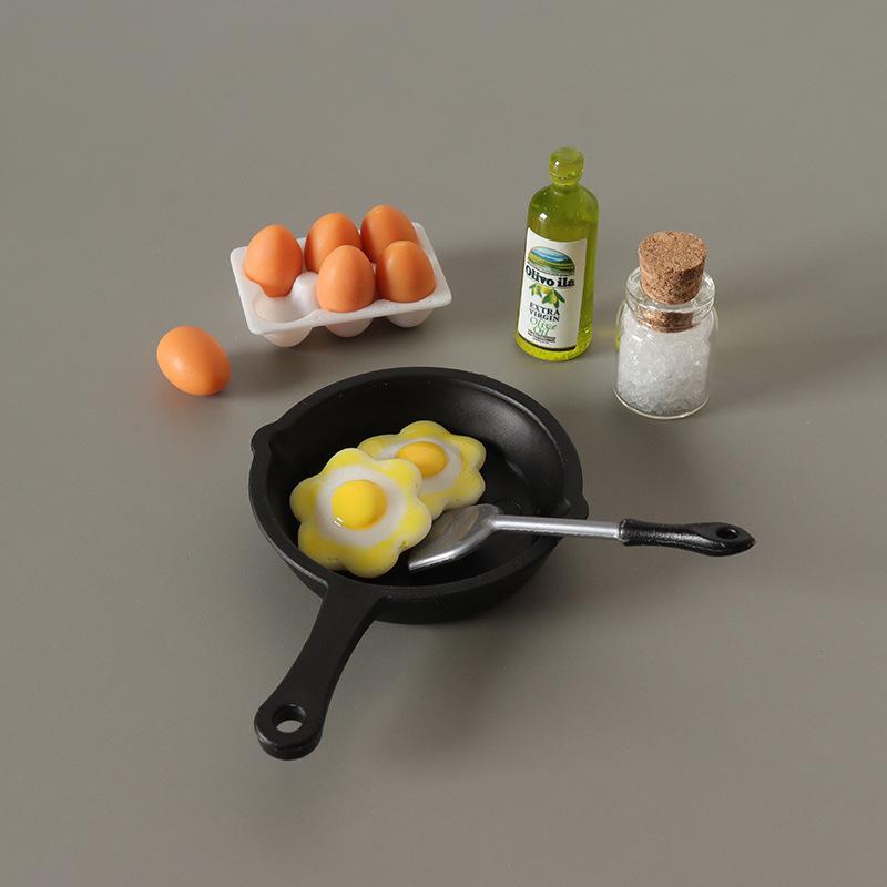 1:12 Dollhouse Mini Egg Frying Pan Kitchenware Model Dollhouse Kitchen Scene Accessories Children Pretend Play Toys Kit