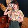 Ladies Summer Bohe Shirt - Oversized Short Sleeve Button Down Flower Printed Top for Casual Layering