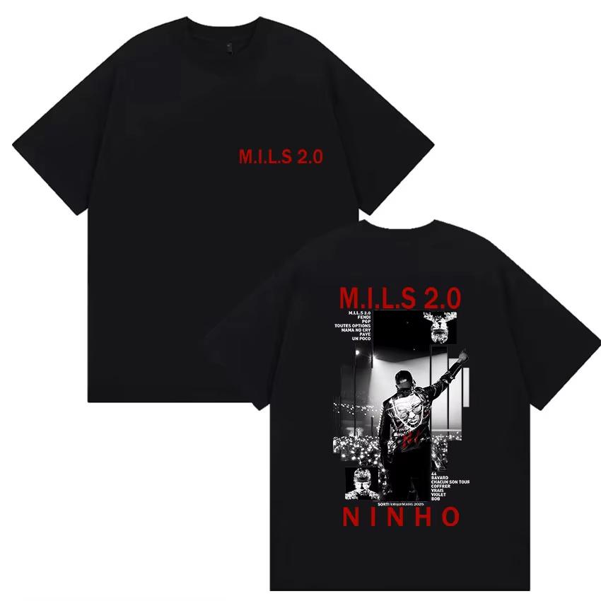 Rapper NINHO MILS 20 Album 2026 Merch T Shirt Mens Gothic Hip Hop Clothing Tshirts Retro Style Cotton Short Sleeve Tshirt