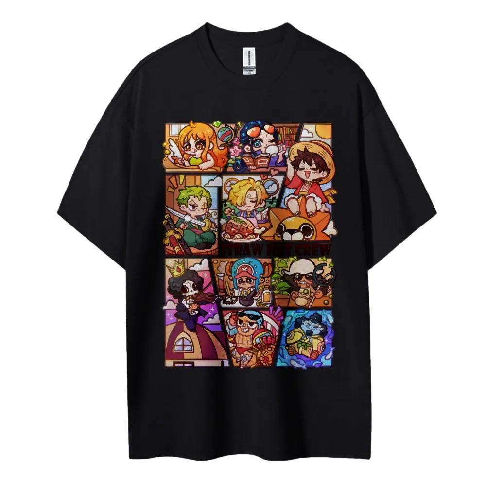 One Piece Cotton Unisex Round Neck Anime TShirt Mens and Womens Summer New Fashion Breathable Unisex Round Neck TShirt