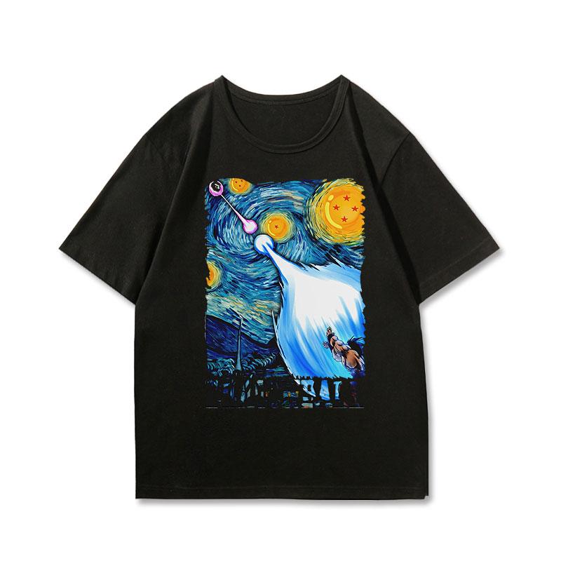 Dragon Ball Starry Sky Oil Painting Style Shortsleeved Super Fire Top Sense Popular Animation Clothes Summer Sports Leisure Top