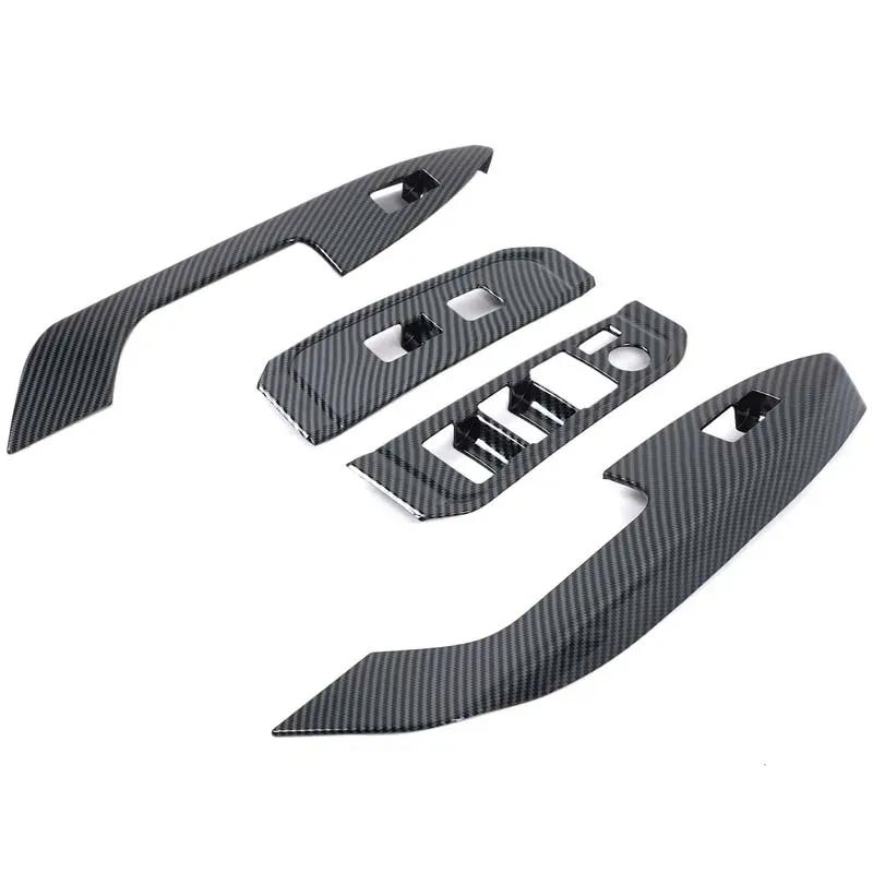 ABS Carbon Fiber Pattern Car Door Glass Lifting Panel Frame, Inner Handle Cover Sticker For Toyota Land Cruiser LC300 + LHD