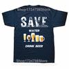 Funny Save Water Drink Beer T Shirts Cotton Streetwear Short Sleeve Birthday Gifts Mens Clothing Fashion Casual Loose T Shirt