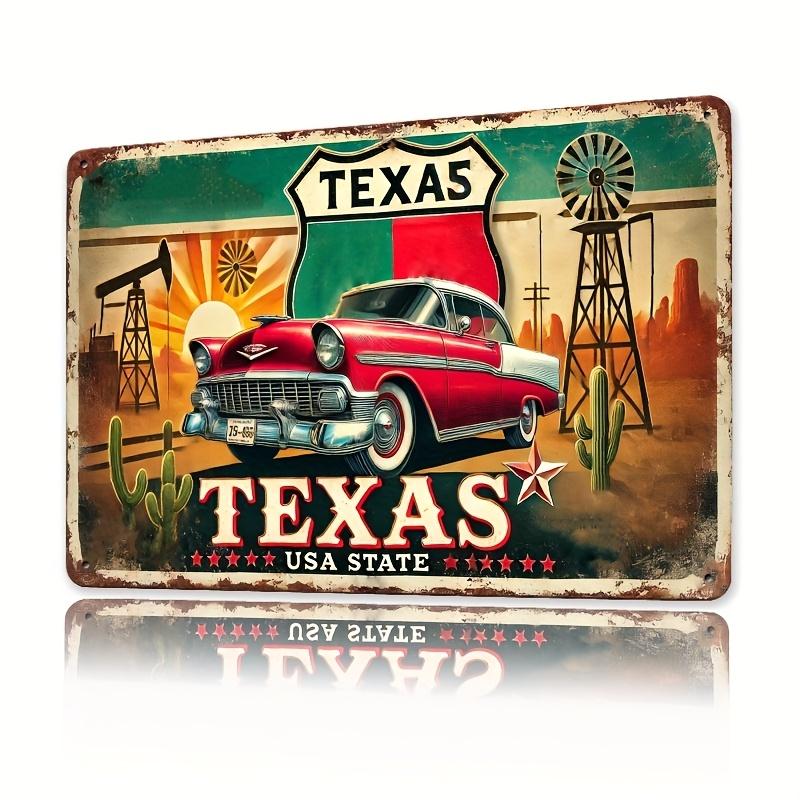 Vintage Texas Red Truck Metal Wall Art Retro Tin Sign with Classic Car Texas Icons Durable Iron Decor for Home Office