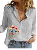 Women Fashion Cotton Linen Blouse Ladies Casual Loose Top Ladies Print Long Sleeve Shirt