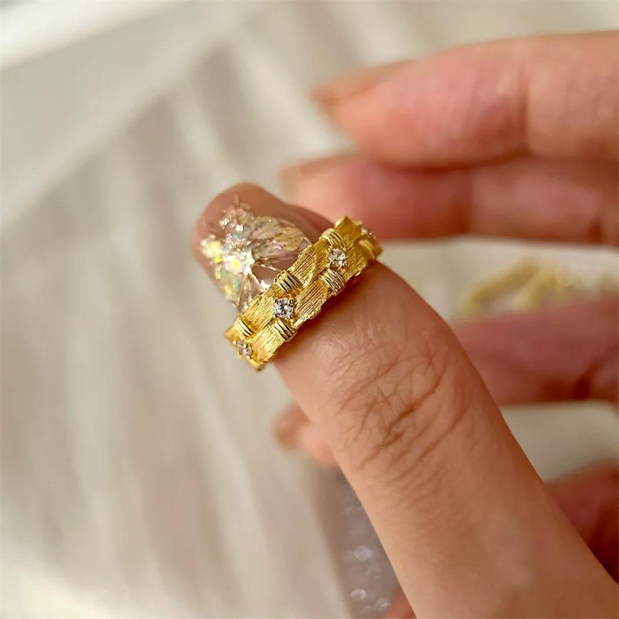 Old Money Wind Middle Ancient Braided Brushed Zircon Ring Sense Index Finger Ring Exquisite Versatile Ring