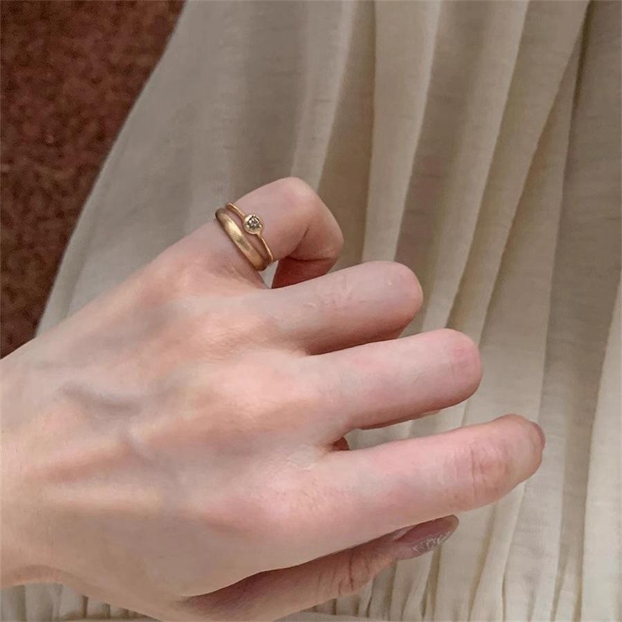 Brushed Stacked Ring Does Not Fade Niche Design Simple Zircon Open Ring Tail Ring Tide