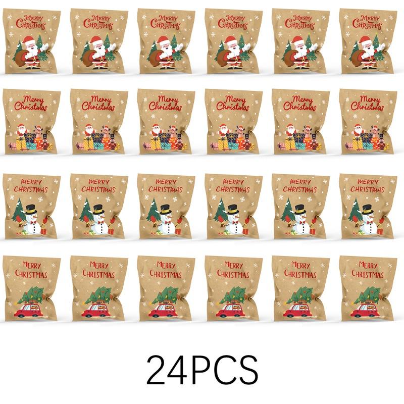 24Sets Merry Christmas Gift Bags Retro Santa Claus Fox Kraft Paper Bags with Stickers Xmas Party Favor Bags DIY Advent Calendar