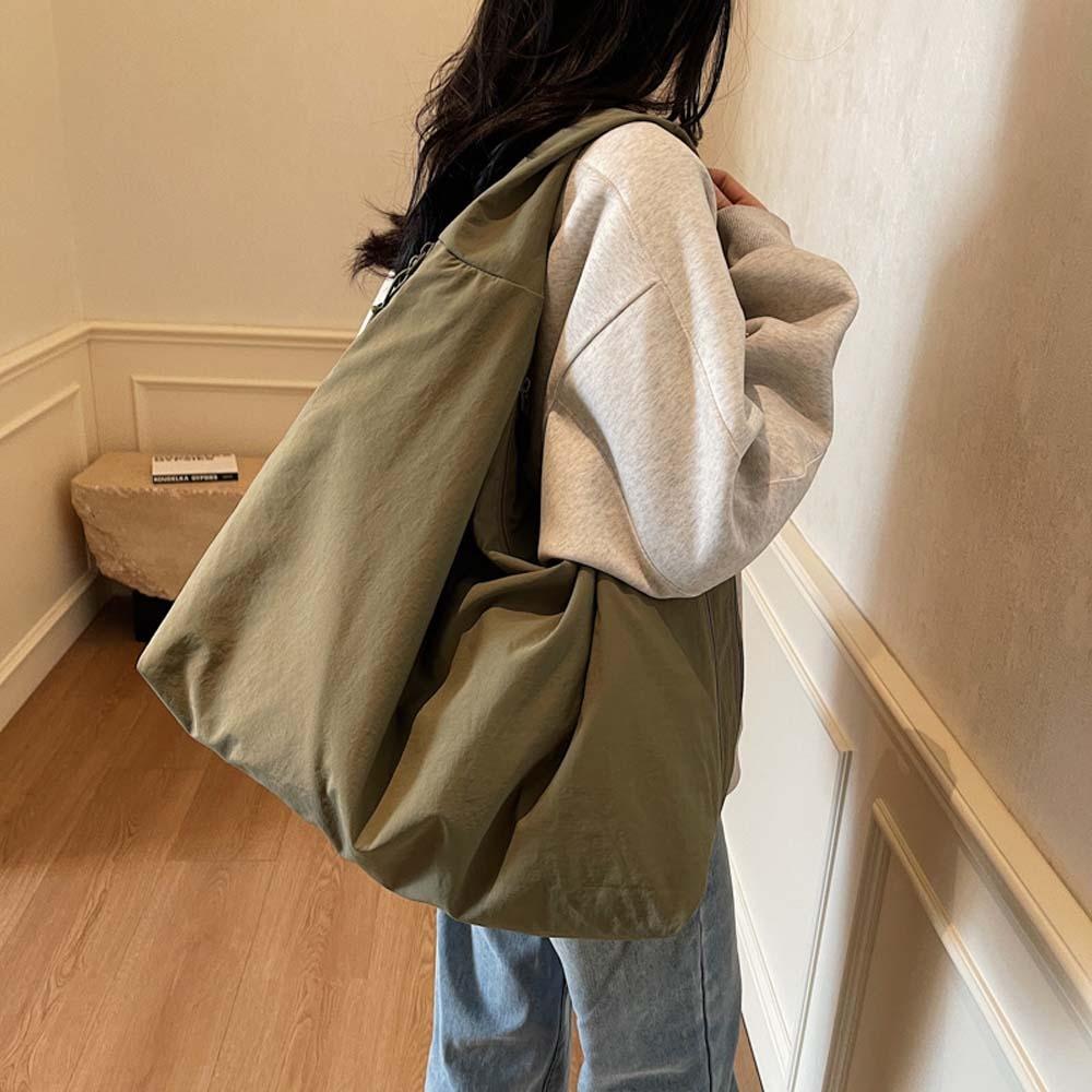Double Zipper Design Large Capacity Tote Bag Casual Versatile Commuting Handbag Storage Pouch Work