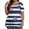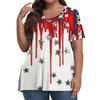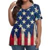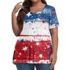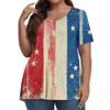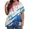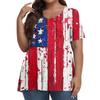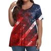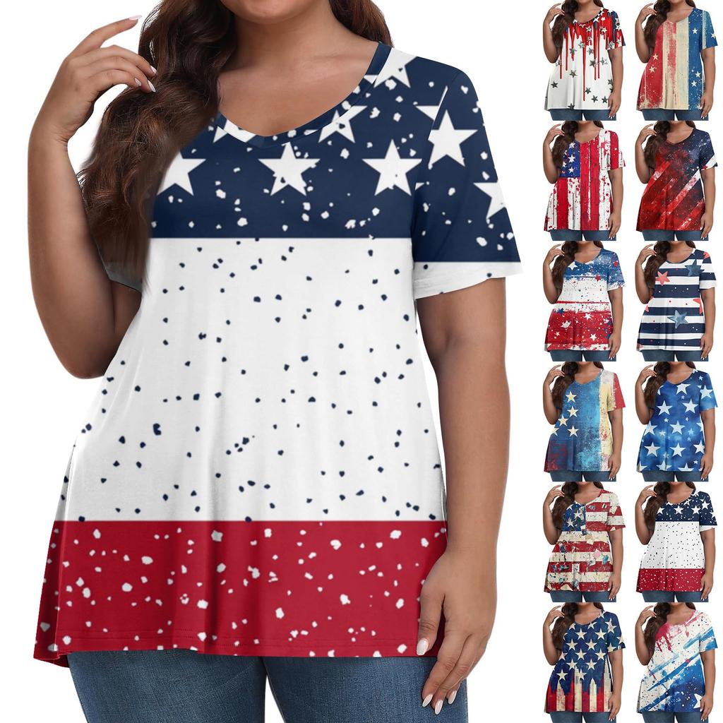 Women's Fashion Casual V-Neck Pullover Short Sleeve Large Size Independence Day Printed T-Shirt Top