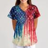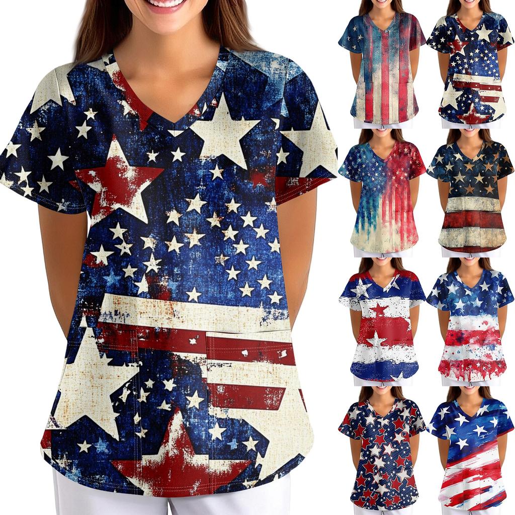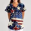 Plus Size Printed Scrub Working Uniform Tops For Women's Cross V-Neck Short Sleeve Fun T-Shirts Workwear Tee With Pockets