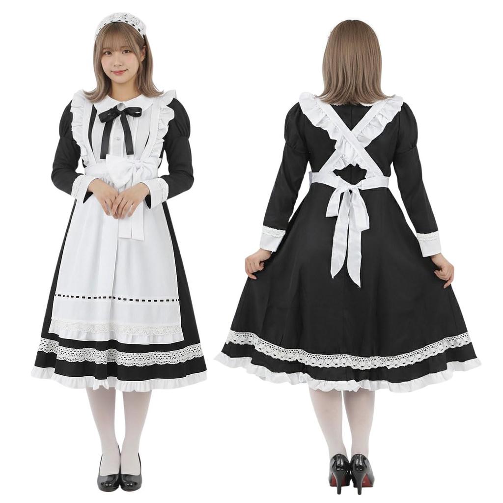 [monoii] Maid Costume, Long Sleeves, Classical Maid Outfit, Long Skirt, Halloween Costume Set, Plus Sizes