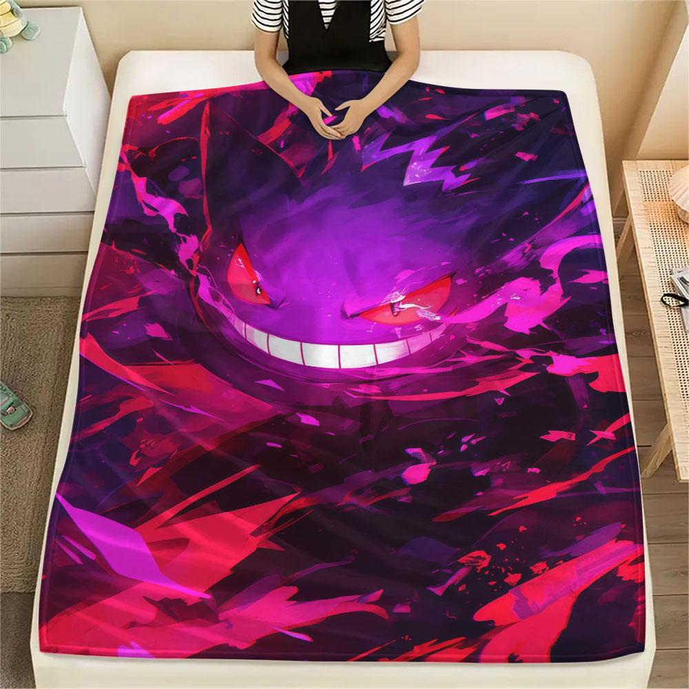 1Pc Gengar Print Flannel Blanket, High Quality Comfortable for All Seasons, Home Decor, Warmth and Comfort, Perfect for Christmas Gifts