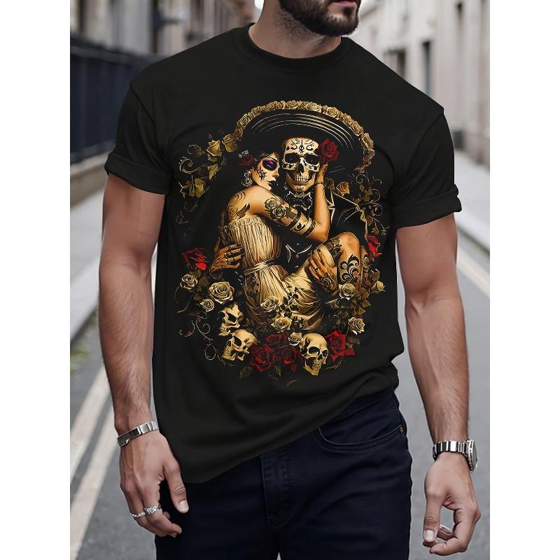 European Sizes This T-Shirt Is Made Entirely of And Features a Skeleton Design Surrounded by Roses. It Has a Casual Style with a Round