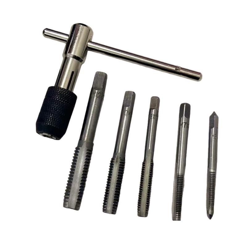 6-Piece Hand Tap Threading Tool Set with T-Handle Wrench, M6-M12 High Hardness Straight Flute