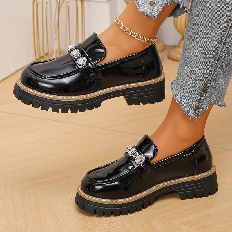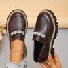 Women's Wide Width Pearl Decorated Loafers, Solid Color Fashion Oxford Shoes, European Style Dressy Casual Slip-Ons