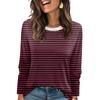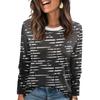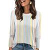 Ladies' Striped Printed Fashionable Casual Round Neck Long Sleeved Round Neck Top