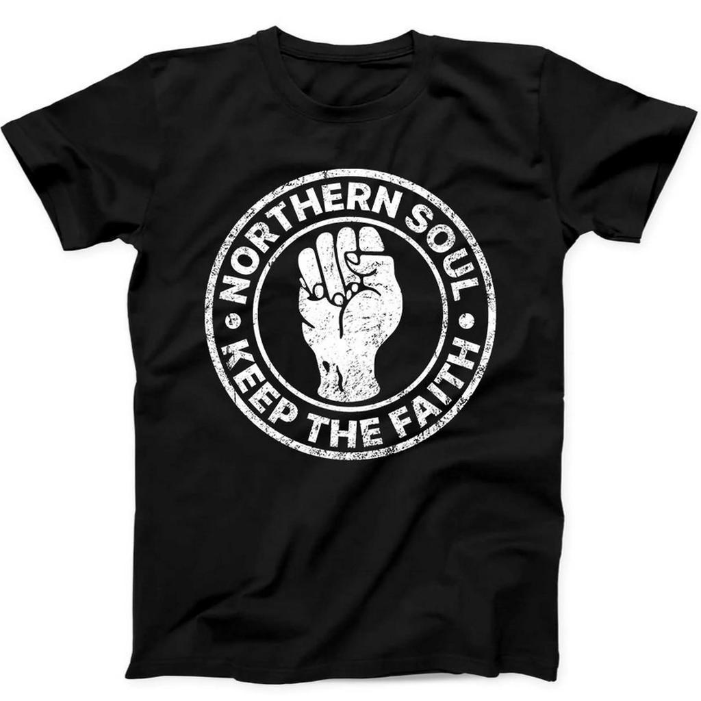 Northern Soul Keep The Faith Motown Scooter Dance Gift Tee Black T Shirt Summer Mens and Womens Loose and Breathable Tshirt