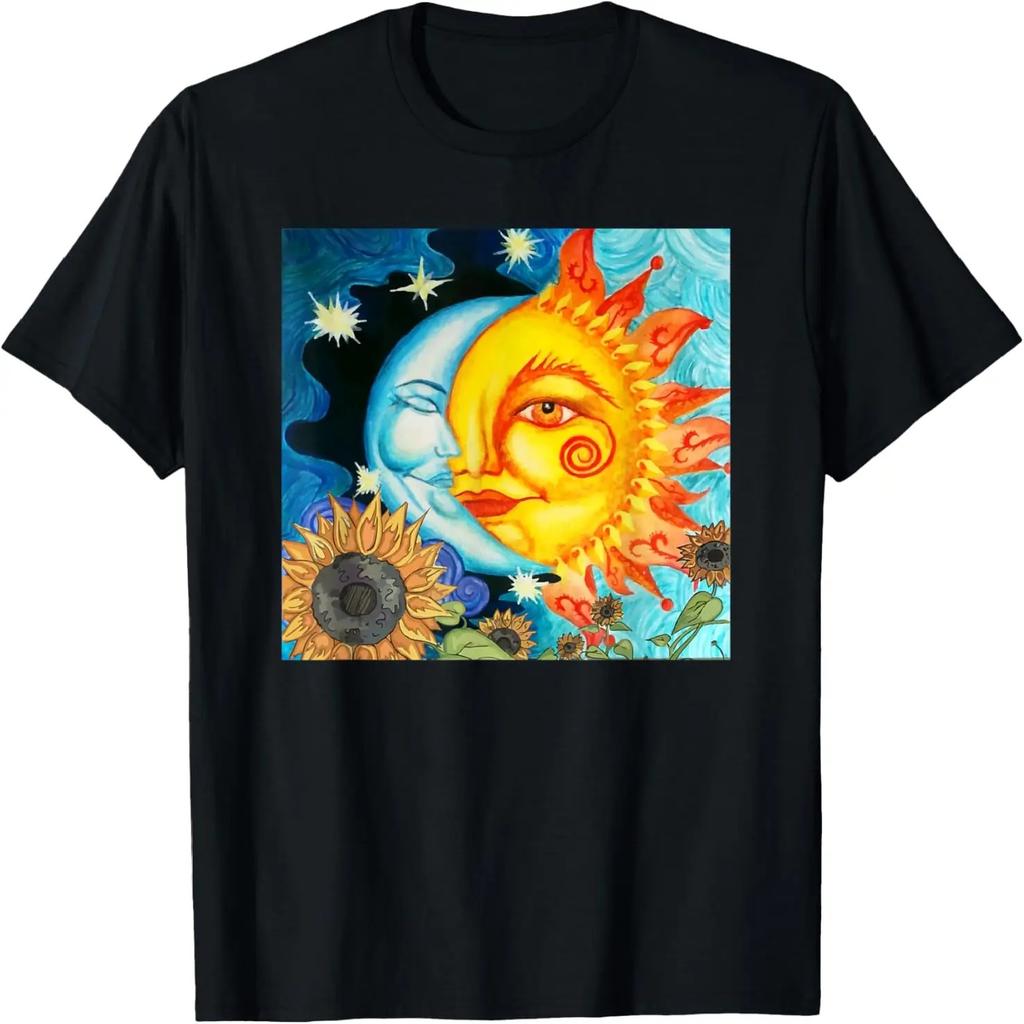 Cute Hippie Moon Sun Stars Cool Sunflower T-Shirt