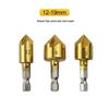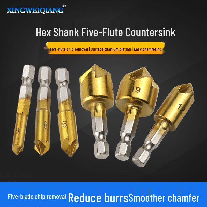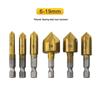 Plastic Wood Board Chamfering Tool Set: 82° Hex Shank Five-Flute Countersink, 6mm-19mm, Six Pieces.