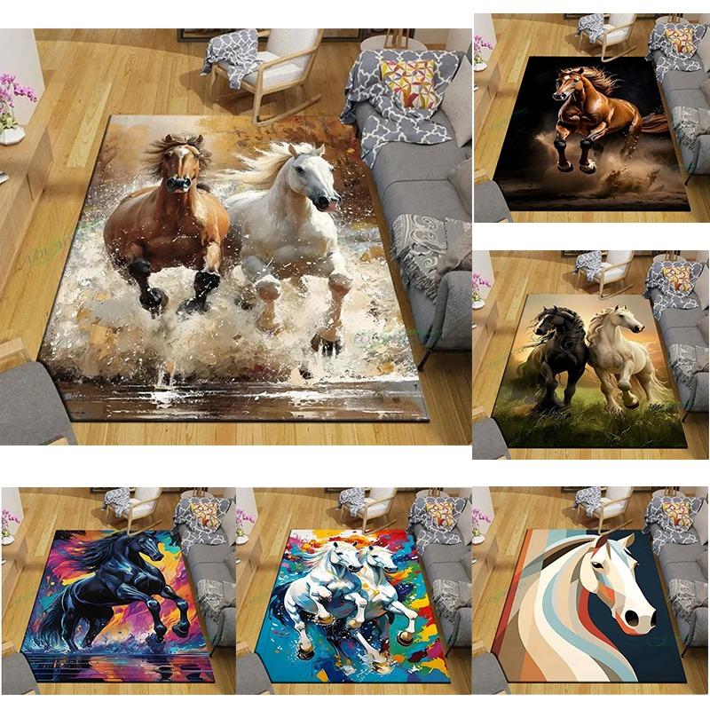 3D Fashion Exquisite Painted Galloping Horse Design Anti-Slip Area Rug for Living Room Kids' Bedroom Mat Large Decorative Carpet