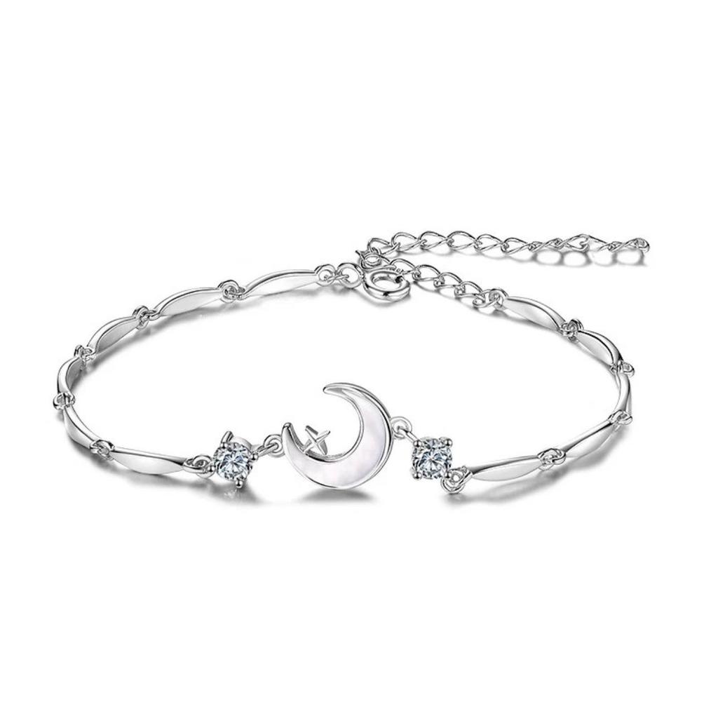 Women's Bracelet with Crescent Stars Inlaid with Zircon Shell Inlaid Moon Silver Jewelry Bangle