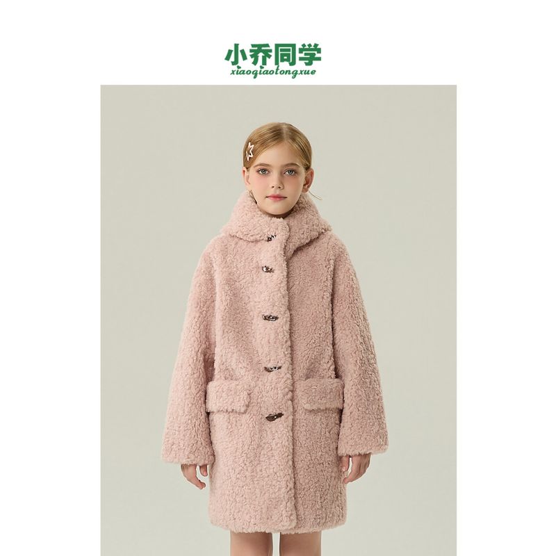 Children's Fur Coat 2025 Autumn and Winter New Style Girls' Imitation Lamb Wool Coat for Little Girls, Mid-Length Hooded